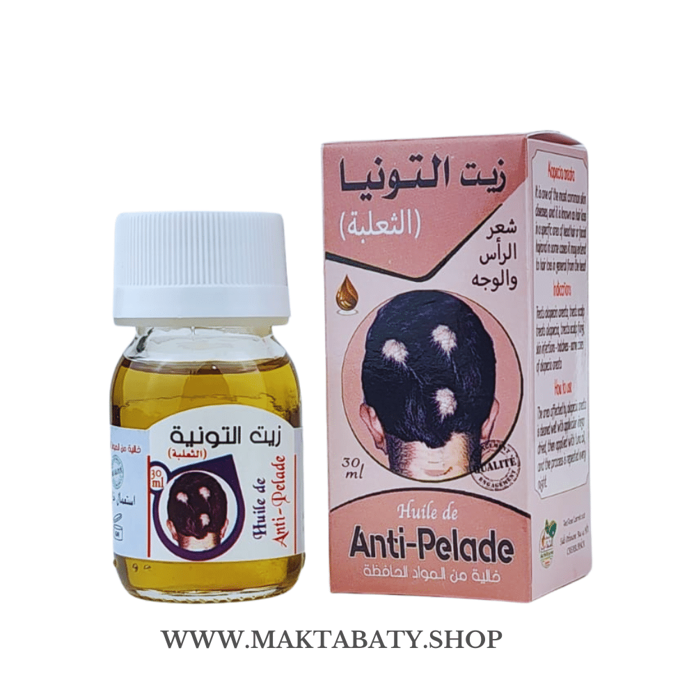 هاد الزيت مخصص لعلاج الثعلبة وتساقط الشعر، وكيعاون كذلك على تقوية جذور الشعر وتحفيز نموه بشكل طبيعي وآمن.