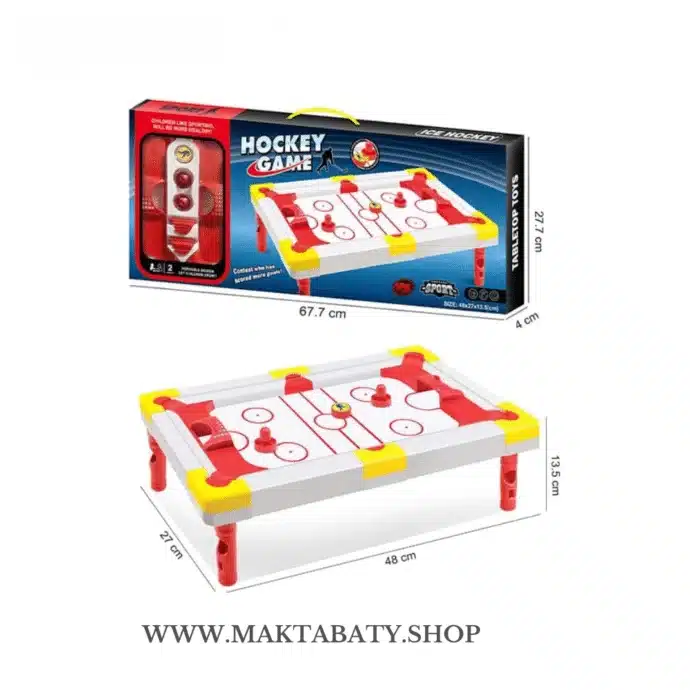 تم تصميم هوكي الطاولة بمقاس عملي (48 سم × 27 سم × 13.5 سم)، ما يجعلها سهلة الوضع على أي طاولة أو سطح مستوٍ، كما تُطوى وتُخزّن بسهولة بعد اللعب.
